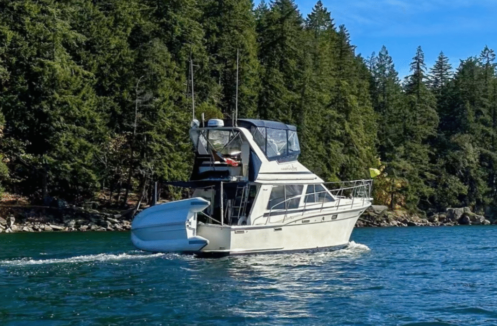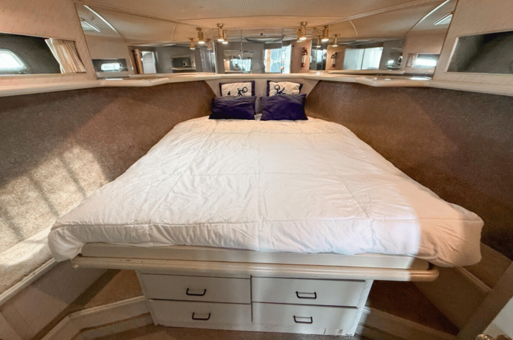 PRICED TO MOVE! “Coastal Vibes” is a fantastic Tollycraft 34′ Sedan combining timeless craftsmanship with modern functionality. Sleek lines and a spacious design, this TWO STATEROOM vessel offers comfort and versatility, including a bright and airy salon, fully-equipped galley, oversized head with separate walk-in shower, and walk-around island berth.