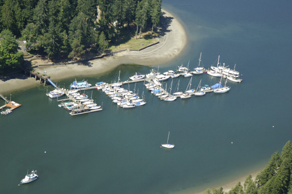 Jarrell Cove Marina is a private marina located on the northwest end of Harstine Island in south Puget Sound with a public accessible fuel dock & pump out. This facility is open Memorial Day thru Labor Day. Fuel and pump out by appointment for the remaining of the year. The marina has a well stocked store on shore. The cove is also home to Jarrell Cove State Park. The park is on the north side of the harbor with overnight dock moorage and buoys.