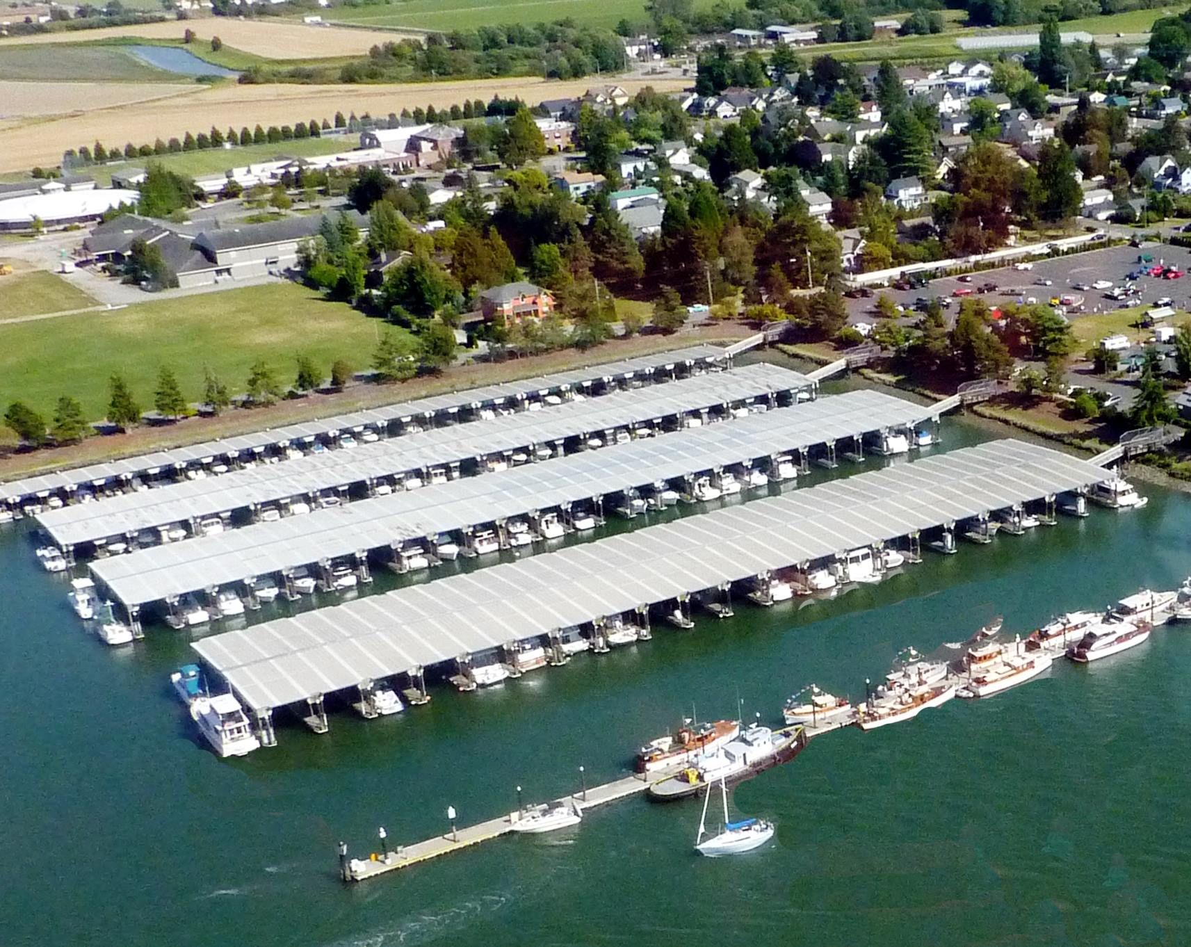The Port of Skagit completed construction of its 300-slip moorage facility in what is now the South Basin in 1970. The North Basin was built in 1978. The Port added dry boat storage and commercial boat moorage spaces after that.